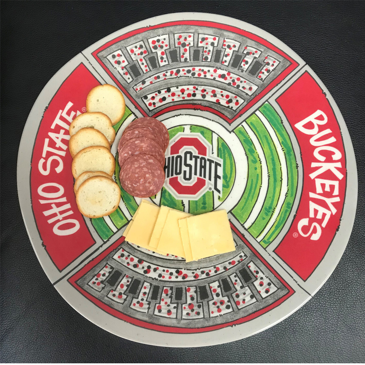 And when game day snacks come out, serve them in style with our scarlet and gray Buckeye serving dishes.