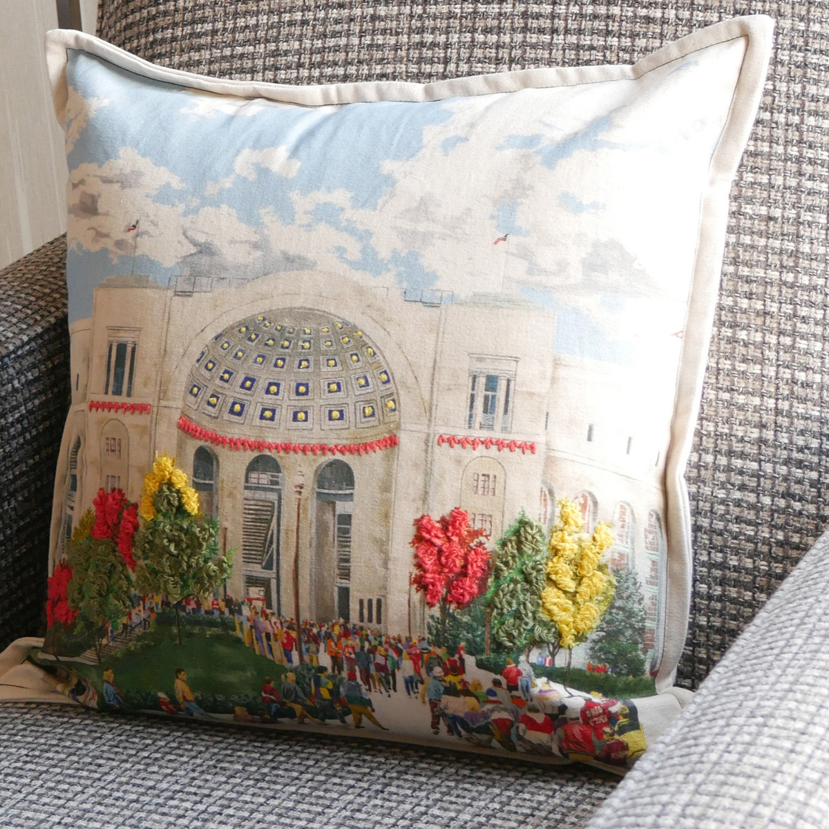 Make your family room FAN-tastic with soft Ohio State blankets and pillows. Our new embroidered campus and stadium pillows are already fan favorites.