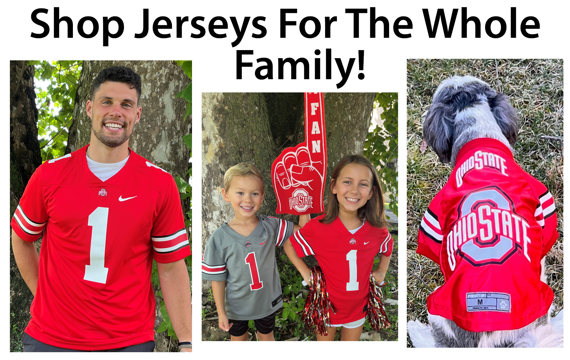 At College Traditions, you can outfit the entire family, even the dog, in officially licensed Buckeye jerseys. It’s the perfect look for family photos and those unforgettable fall Saturdays cheering on the team.